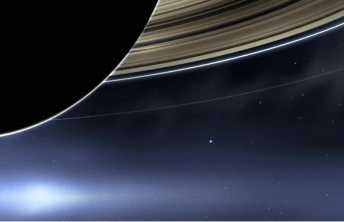 A few years ago, NASA’s Cassini Telescope snapped this photo of you and me, as the telescope approached Saturn. The brighter blue dot near the center of the photo is us – planet earth!